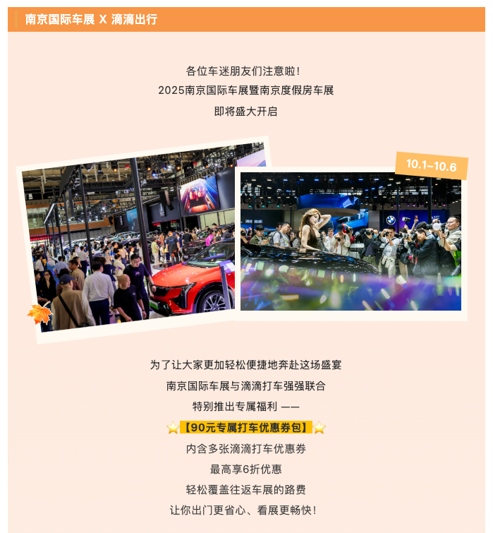 【滴滴出行】十一出行券由南京国际车展 X 滴滴承包