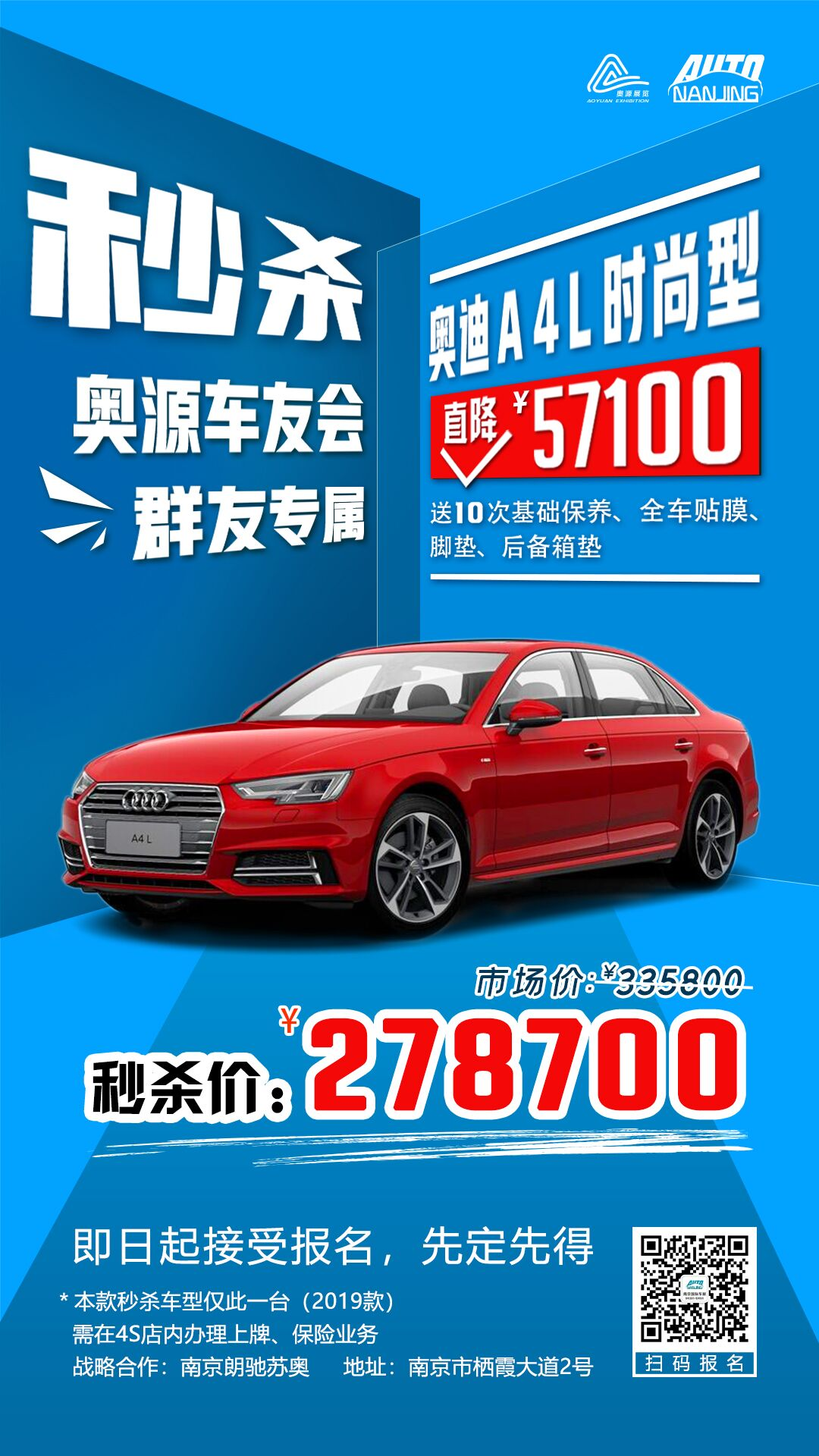 如果你有一定的预算,还想追求品质之选,那么这台A4L简直是为你量身打造的。奥源车友会的车友限定秒杀价直降5.8万元,请容许咱化身复读机:心动的快扫一扫报名,就这么一台就这么一台就这么一台就这么一台就这么一台!